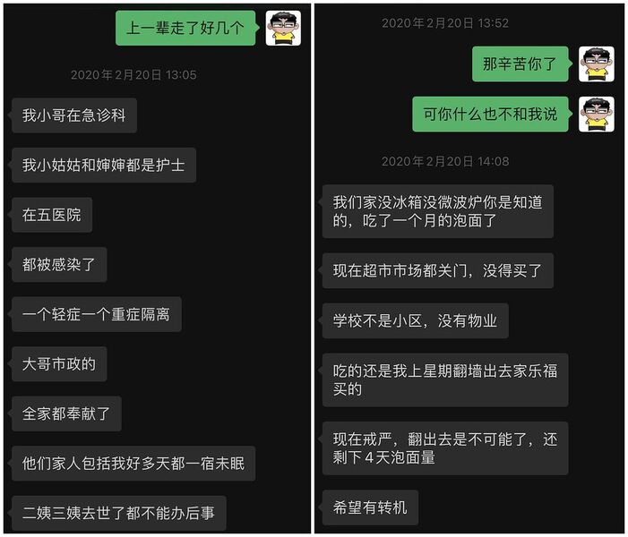 女友打来电话,她家又一个亲戚去世,也是医生,这是她家因疫情离世的第二个亲人。但在长江对面,私家车无法上路,也不能去探望火化,更别说葬礼,问我有没有什么办法。我找到做殡仪的朋友,他说他们的工人都跑了,更何况疫情离世的人只能直接拉去火化,别无他法;