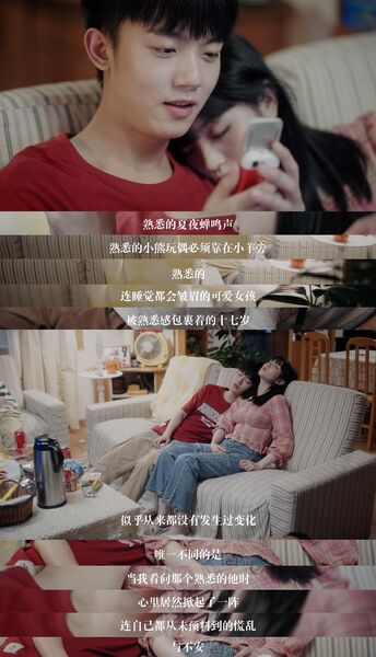 ——熟悉的夏夜蝉鸣声,熟悉的小熊玩偶必须靠在小羊旁,熟悉的连睡觉都会皱眉的可爱女孩,被熟悉包裹着的十七岁,似乎从来都没有发生过变化,唯一不同的是,当我看向那个熟悉的他时,心理居然掀起了一阵连自己都从未预料到的慌乱与不安。——第十三集《北京欢迎我》