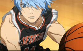 黑子哲也,主角兼吉祥物,整部就是他自己的篮球。个子不高,篮球技术路人水平。特技:隐身,让篮球隐身,让篮筐隐身,让对友全体隐身,打着打着让对方产生我是谁我在哪的绝望感。