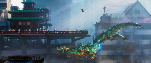 《乐高忍者》的电影版故事发生在一个环岛城市。这个城市的风貌融合了多个亚洲城市的元素,然而生活在这里的人们性格却完全是美国style。