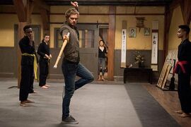 只说功夫片方面,天朝观众还是见多识广的。以我这个外行的眼光看,剧中动作戏虽然确实有设计。但是,丹尼尔一个人练习时,很像在做广播体操。而和人对打时,不仅没有《夜魔侠》那种拳拳到肉的质感,更要命的是,连一个人练习时的那种假把式的功夫元素都没了。本来按照漫画的设定,主角在昆仑的寺庙学习15年,应该是少林的路数。当然实际一点,不太可能让男主真去少林寺去实习体验,但是,起码也去练一两个月的截拳道吧(这种班在美帝还是不难找吧),起码要把技击的感觉演出来。向神马“以柔克刚”、“借力打力”之类的概念,不指望你一部漫改剧能演出来。