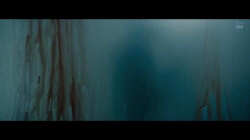 下一秒,镜头切换到浴室,伴着哗哗的水声,凶手正在门内有条不紊地清洗身体,水雾氤氲的玻璃门上满是血迹——作案后毫不慌乱地处理现场,这种冷静到极致的行为也和杀害咖啡店女老板后在烟灰缸里摆上沾有尾形唾沫的烟蒂如出一辙。联想起主人公在开头被迫让座后的报复行为,一言不发却鞭挞人心,不免让人怀疑他是个睚眦必报的极端人士。
