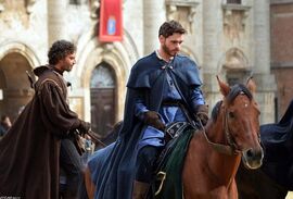 跟大家分享一张我最喜欢的剧照嘻嘻——象征贵族的蓝色,暗喻了科西莫继承父亲的财富后又充实了家族的权力和文化资源,弗洛伦萨无冕之王的身份。马上俯身,指代科西莫对艺术家和文人的尊重,以及把人文艺术带向全民众的美好愿望。是对科西莫最好的诠释(~ ̄▽ ̄)~