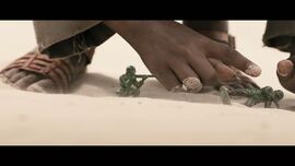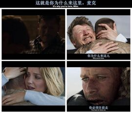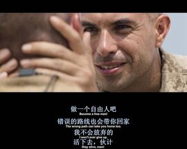 在“看不见的敌人”射击下(此处有男主中弹后回望不到敌人,切换到女主误以为男主求婚,离开后男主扭头回望),大男孩如同手中得而复失的SOS烟雾弹样,求婚受挫(有戒指画面),伴随因为军职与女友的争吵,敌人也逐渐显现.Mike and Michael(这里应该有个梗)有如神助般干掉追击者(此处枪战,根据后面丢弃阻击枪和伤口的位置,应该为真实).最后一敌人(父亲,换了件衬衫穿着暗杀目标的西装)没子弹扔枪,切回临走时回头凝望,准新娘的画面,