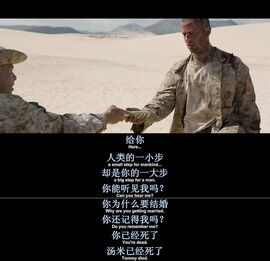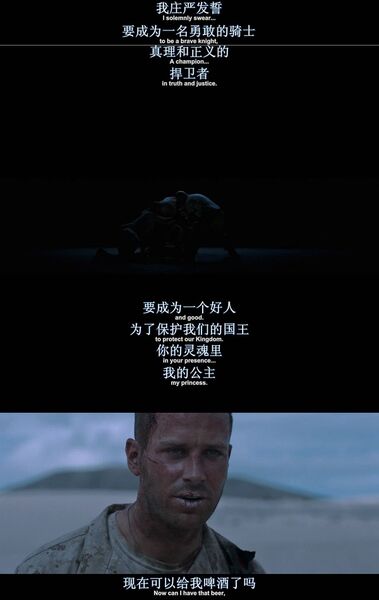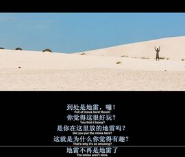 确认"踩雷"后,黑男登场.随后开启自救模式,确认还要等待52小时(希望是苦难得以延续的根源).一场沙尘暴吹走无线电,断水绝望之际,黑男出场嘲讽兼具把"地雷"引指战争.精彩的对话和表演得到位,足显自编自导的水准,也是最精彩的部分.