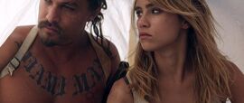 另一边,由杰森·莫玛饰演的食人魔壮汉正宰杀着新抓到的女子,给自己的女儿做饭,并且耐心的给她画着人像油画。