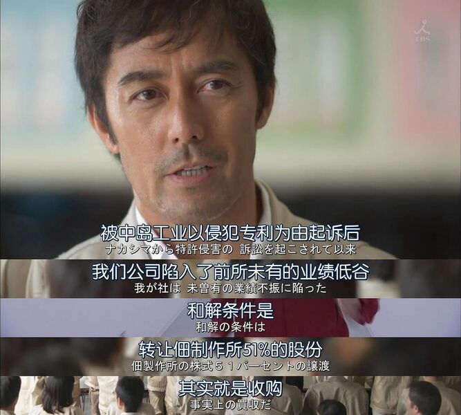 宽叔的公司因为有专利官司缠身,产品也没人敢买了,公司逐渐陷入倒闭的境地。中岛工业这时提出和解,不过和解条件是:要宽叔转让公司51%的股份!其实就是收购宽叔的公司了。