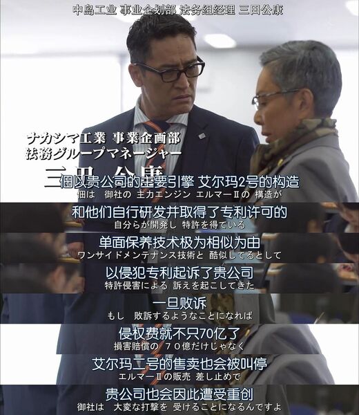 (3)专利诉讼一定要请专业专利律师,因为专利本身就是一件非常专业的技术文献,需要非常专业的技术背景才能理解,如果不能理解专利的技术,应对专利诉讼也就力不从心。剧中宽叔的公司就是因为最开始找到不是专业的专利律师,连专利技术都看不懂,所以和中岛工业一交手就完败了。