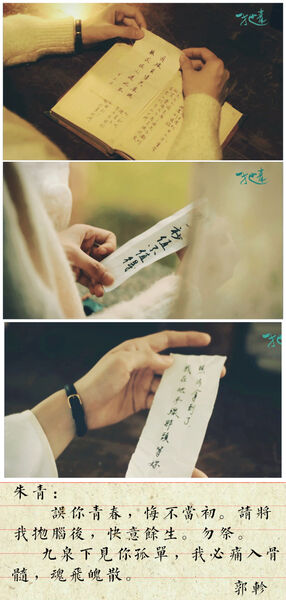 朱青由连俞涵饰演,是一位坚韧勇敢的女性,在剧中嫁给了张大人(杨谨华饰),并在国共内战期间成为军需工厂负责人,最终随家人迁居台湾。