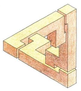 回到这部我们今天看到的电影Zoom,为何导演制造的矛盾让我们都深感人物的困境呢?因为我们如此习惯的把自己和3个人同时放在一个次元空间里去感受(就像刚才你那个天真的朋友一样)——也就如形象的矛盾三角形一样,我们似乎知道这个三角形不可能存在,但就是没法反驳眼睛所看到的三个角的连接点——次元会在那里消失还是将继续?我们都希望继续,都恐慌消失,所以,这个故事可以在梦中无限循环继续,可我们终究还是要醒来。只有醒来,意识才能在真实中存在下去,我们必须回到真实中解决自己的困境。