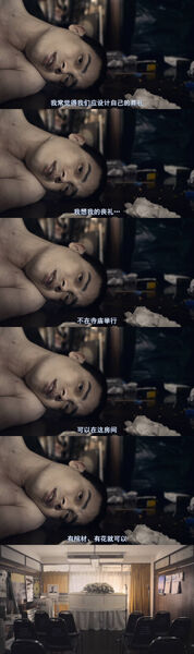 Yun累倒后,自己脑补了一个理想中的葬礼,地点就是自己修图工作的房间,以及五个葬礼嘉宾(母亲、Je、Im、两个朋友),回忆自己未完成的遗憾