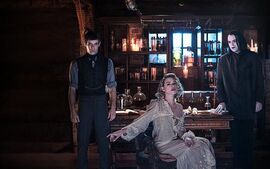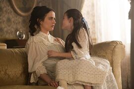 虽然女主的(黑暗)力量很强大,也许不害怕攻击,但是她被折腾了这么多年,心里上肯定十分希望有个人可以依靠一下,就是上季曾经为她驱魔的伊森了。大概是由于瓦妮莎本身的特殊,所以外界对于“怪物”的判断标准在她这里并不适用。她仍然默默且克制地爱着伊森,仍然和大儿子成为了好朋友,因为她是真的有一颗善良的、不以貌取人的,爱憎分明的心——在当时的伦敦,简直打着灯笼也难找。最后一集拍了想象中,Vanessa和Ethan的生活,他们都穿着一尘不染的白色衣服,生了两个可爱的孩子,米娜还活着,周末有友人拜访。编剧大概是故意让我们心疼吧,这个拍出来了不就意味着她永远也没有那一天么?
