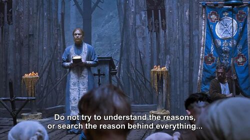在这个落后的乌克兰村庄里,村支部牧师用宗教和恐惧在控制村民的想法。他暗地里制造恶魔,又在公众面前宣称用信仰上帝来抵抗恶魔。当从西土大英而来的科学家格林来到时,村支部牧师宣称这个人会带来厄运。死了女儿的村长(百夫长)不怎么相信恶魔的套路,于是他聘用西土大英而来的科学家格林去探查真相。村支部牧师一面阻碍格林,一面煽动民众去排斥格林。牧师告诉民众:不要试图去理解原因,不要探寻事物中的因果;科学家说这是愚昧无知,就让他们去说吧;科学家自以为带来的是知识之光,但他们带来的却是恶魔;用信仰驱走恶魔!总而言之,无神论是邪恶的,不道德的。不过,具有启蒙思想的科学家不会这样认为,对于他们而言,恶魔不是知识带来的,而是内心的黑暗带来的。
