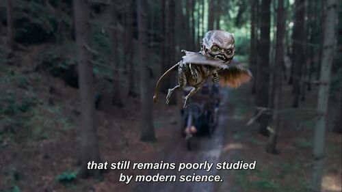对这个故事还有从世俗化的道德意图来看的解释,特别是精神分析的解释。我觉得,其中一种比较可信的解释是,Khoma看到的邪灵只是他潜意识里的罪恶感的具体化形象。Khoma逃避了自己作恶的现场,并由自己的行为而产生的内疚,转入到潜意识里。妖怪们的丑陋形象表示Khoma对自己行为的厌恶感。那个阻挡妖怪的圈圈,是他内心抵抗这种感觉的屏障。而由于他酗酒和逐渐身心疲惫,导致在第三个夜晚,内疚感变得强大,而心理屏障则脆弱了,因此他就被吓死了。这样的解释有它的趣味,尤其是在文学分析里,但对于《魔鬼的精神》这个电影而言,意义不在于这种心理分析解释本身,而在于这种解释能够将超自然的外部世界现象转化为自然的内部世界现象。