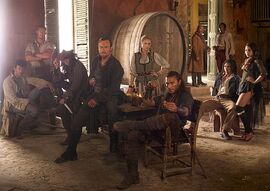这一派有非常重要的五个人:查尔斯•韦恩船长、他的舵手杰克、他船员中的女杀手(抱歉我一直不知道这人叫什么)、妓女麦克斯和最终得到藏宝图的Billy Bones。