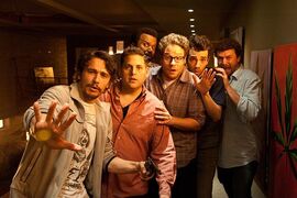 Jay Baruchel, 加上Seth Logan, James Franco, Danny McBride, Craig Robinson, Jonah Hill 组成的六人行为主。讲述了一群真实的好莱坞(喜剧)明星在虚构的世界末日里荒诞的求生计。