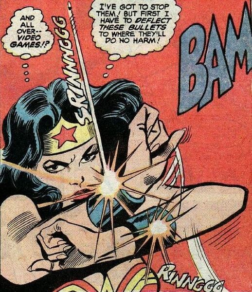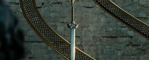 在漫画中,这把剑一度叫闪耀之剑Flashing Blade,由火神(宙斯和赫拉的儿子)赫菲斯托斯打造,可以实现亚原子水平的斩切。但这把剑威力太强大,甚至可以控制持有者,后来被神奇女侠销毁。