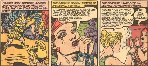 她们然后将水手杀光,而出生的婴儿中,只有女婴被留下,男婴会交给铁匠。这极致的女权主义只是神奇女侠在历史上政治身份的一个缩影。