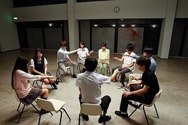 这部称得上是小众定位的冷门影视作品,制作水平几乎是微电影等级,在狭小的固定场景,用简陋低成本器材道具,无配乐无调色,画面普普通通,节奏缓缓崩溃,一般观众很难看得上眼;只合适推荐给桌游迷、樱庭奈奈美粉丝或者黑暗文青观影。 作为一名有三年玩龄的桌游迷,我是对这部以“真实狼人游戏”为题的电影很好奇,但从中看到的设定规则与现实通用规则有很大区别: 通用规则,狼人个数需要占玩家总人数1/3,例如10人局应配置3狼;电影中的10人局是配置2狼。 通用规则:狼人、村民、预言家、女巫是最基础的标配角色,守卫、村长、白痴、猎人、丘比特等属于进阶可选角色;然而电影版没有女巫一重要角色,因为真人死亡不能复活的缘故。 通用规则:所有玩家必须按顺序发言,中途不能插话,投票阶段允许弃权;电影里是无限时自由交流,并且强行要求所有人投票,等同不出现“平安夜”,意味着牺牲一人苟且偷生。 通用规则:按照一定配额比例,死者可以留遗言提供线索;电影里因为真人死亡不能说话的缘故。 综上所述,电影的游戏规则其实是根据“狼人游戏”为背景,规则更倾向“Killer”;当然,为了减少剧本构思和合理性而大幅化简章程是可以理解的。 影片中游戏局是2狼人1预言家6村民配置,观众是从樱庭奈奈美饰演的仁科爱梨这个已确定“村民”身份牌的角色出发;因为属于本格推理,而且疑犯目标数量不断减少,所以“狼人”身份很好猜,也因为他们玩的水平不算高端。 事后回顾,对于整个游戏进程和分析思路尚算合理的,“狼人”在开局就先从最有威胁玩家下手;因为人数少,2狼配置确实不会出现投队友票高风险低回报的掩人耳目行为。唯一觉得不足是藤木这个预言家完全没有尽责,在最后一天放弃公开“验人”结果。 关于姐姐花中最后出卖队友的情节也合理,她说过一定会保护妹妹,这方法残忍但可行。 片中高潮部分,姐姐花中冒充预言家与藤木对质时,她能清楚说出预言家验人方式让藤木陷入苦恼,起初我也很疑惑,但到结局才想起,这是事故埋下的漂亮伏笔,说明花中就是上一局的真预言家。 与其说考验人性,互相猜忌与指责,我觉得剧情亮点应是爱梨的性格变化,前段惊恐神烦的状态,后段变得冷静反常“他人死掉反而让自己有活着的感觉”,看到这里,确信女主角爱梨的纯洁不复存在,岂不正是变态游戏的真正目的!? 电影非常结尾值得点赞,居然有下半场的设定,由此看出:无论多么纯洁的善人,能存活下来的胜者必定成为下一局的“狼人”,就是说,如果“狼人”不能拿下第二局(下半场),游戏会周而复始继续循环,“狼人”的胜利是在欺诈与泯灭良心基础上,能离开游戏局的只有是最黑暗赋予人面狼心的“人狼”,一个制造黑暗人格的小作坊。 PS:海报真会骗,根本没有这么豪华!