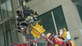 《假面骑士铠武》是一部日本特摄电视剧,于2013年10月至2014年9月播出。剧情设定在一个新兴的都市,年轻人通过跳街舞来寻求活力。他们暗地里流行着一种通过lockseed召唤小动物Invase,并让它们互相战斗的游戏。然而,这些小动物Invase开始从异世界之门现身,并威胁人类的安全。假面骑士铠武是一位能够使用鲜艳的水果lockseed变身的英雄,他与其他骑士一起战斗,拯救人类免受怪物的威胁。剧中的动作场景精彩刺激,同时也探讨了现代社会中年轻人的困境和信念的重要性。