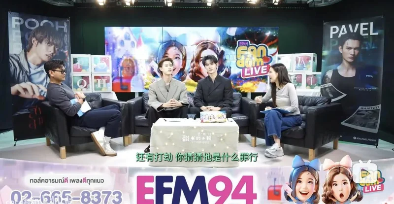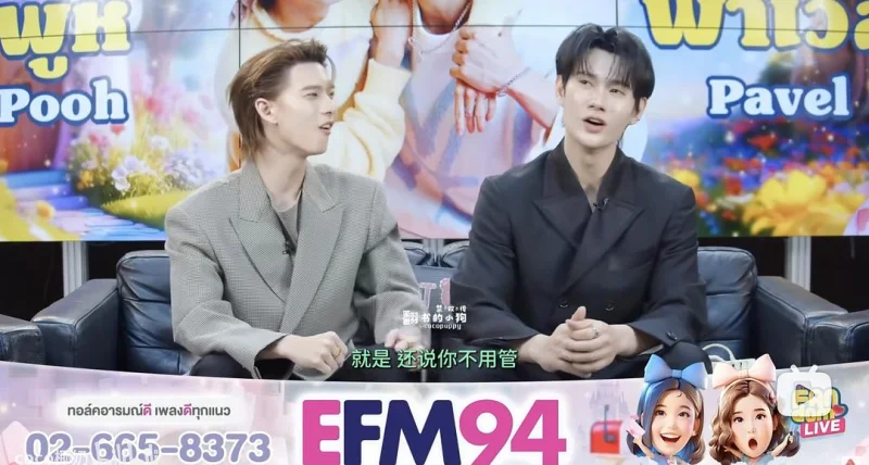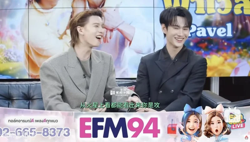 接下来节目就开始有一搭无一搭一直在问一些例行公事的问题,两个人之间的荷尔蒙毫无引爆点,一点火花都没有。能够感觉到Pooh想要努力活跃气氛,Pavel可能是因为身体或者是性格原因,比较自我也很有自己的主张,都一直比较淡淡的,也没有特别想要靠近Pooh的意思,这个状态在后面的游戏环节尤其明显,帕表现得比较疏离,我个人感觉他自从演了警探的角色,就跟极速宣传期的时候很不一样,似乎是为了贴合角色,总是给人一种冷淡的感觉。面对这样的状况,接下来我们一起欣赏,面对这样一位聪明、有能力、实力又在自己之上,吸引自己的人,小狗如何上演going大法。