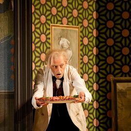 胖仆人还不忘提醒,那位刚才要把自己的鹰嘴土豆味三明治给自己的男观众可以由工作人员带离现场了。剧场是不允许吃东西的,你虽好心,但是违反了规则。又是一阵哄堂大笑。