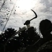 岛上唯一幸免的男人,貌似疯傻痴呆,嚼着树叶。他是真正的旁观者但别忘了杀三个老太婆他就在身边,血淋淋的镰刀下他发抖的手和树叶。
