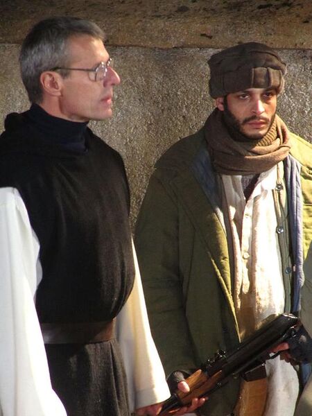 影片的故事性并不强,情节已经被淡化,只剩下最简单的事实在推进着故事的进展。影片的节奏也很缓慢,电影中更多的是这些修道士们的活动,他们的宗教仪式,他们关于坚守还是撤离的讨论。导演将镜头更多地是对准剧中人物的内心,富于质感的画面,庄严而虔诚的祷告,从对即将到来的大难的惧怕到最后内心的平静,突出了这些僧侣们逐渐坚定的信仰,从软弱人性到坚强神性的转变历程。尽管情节消隐于神性的表达背后,但整部电影却并不沉闷,悬念一直保持到终场,紧张的气氛压迫着观众的神经,并触动着人们的内心。平静的叙事之中,却充满了张力。