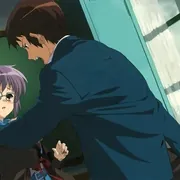 有希在自己的独角戏中设计了和春日的闭锁空间相同的桥段,阿虚你要原来的世界还是只有我在的世界. 不过对有希来讲,对阿虚的感情则不一定是喜欢.而是值得信赖的人,阿虚一次次的把春日从悲观中拯救出来,同时这也是对有希使命的挽救.我们或许可以把消失中害羞与微笑的有希同学就当成三无有希内心的具象化.直到影片的最后,依旧没有表情的有希低着头轻轻地说道:"谢谢"时,相信观众已经能从中捕捉到那一丝丝稍纵即逝的温暖了吧.