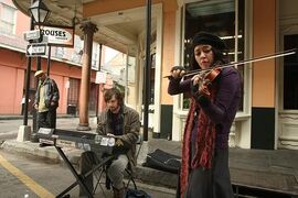 父子之间由音乐而生的亲情记忆与代际矛盾;印第安人族群之间及他们与警察之间的因历史与权力而生的微妙冲突;伤时忧民的文学教授、作家由天灾而反思人祸之根源而生的愤世与自戕;衣食无忧、游走红尘的浪子音乐人嫉俗又天真地热爱这座城市;飓风之后生意受挫仍要打起精神应付现实困境的白人女大厨;同样因为飓风而令事业走下坡路,充满人性的弱点却自信坦荡的黑人小号手……飓风之后,被毁灭的不仅只是古老的街区,生意兴隆的餐厅,鲜活的生命与庭园,新奥尔良的“难民”在经历大自然“洗礼”之后,更难忍受的应该是他们引以为傲的音乐、游行、party之消失。因此人们大灾之后反而更坚持要举办一场又一场嘉年华、酒吧演唱会,更需要街头音乐家们制造出的各种喧闹。