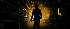 其实说起来梦魔弗莱迪比起一根筋的前辈杰森还是有其优势所在的。首先是杀人的技术含量。相较于数十年如一日,一把刀用到死,杀人有如流水线作业的杰森而言,弗莱迪的自由度堪称奢侈,凭借其控制梦境的能力,完全可以达到不亚于Chucky的死亡陷阱和死神的无解意外死亡的效果。其次是氛围的营造。杰森说白了只会追杀,外加所有杀人狂的必备招式:瞬间移动(或者是影分身),摘了那个冰球面具瞬间变成长得不那么和谐的路人甲。话说杰森、麦克•梅尔斯和人皮脸如果大家互换一下头套,恐怕亲娘都认不出来谁是谁。加上那份对各自专属武器的痴情,此三人根本是来自平行世界的同一只老妖嘛!弗莱迪就不一样了,首先他不像那三只一样无口,而且话还挺多,罗伯特•英格伦的弗莱迪就始终致力于恶趣味的搞笑,所以冷场率比那三位低得多。其次是梦境本身就大有可为,[入侵脑细胞]和[暖暖内含光]的梦境效果也许就是弗莱迪的未来所在。