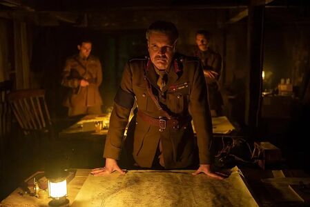 艾林摩尔将军由科林·费尔斯饰演,是《1917》中一位英国高级指挥官,负责策划并执行战略撤退以避免重大伤亡。他在电影中展现了冷静与果断的领导力,在战场上做出关键决策,并努力协调各方资源以应对德军的威胁。尽管他身处高位且立场坚定,但他也面临着来自上级的压力和对士兵生命的双重考量,最终通过他的策略帮助协约国军队成功避开了德军的伏击。