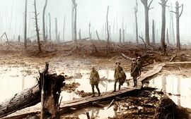 这场泥泞中的战斗也成为一战中最为残酷的一场战役,指挥官们甚至会为他们的士兵恐怖的经历而当众哭泣。一名英国工兵写道战场的状况:“没有地面可以走,炮弹一次又一次地把土地犁开,什么坚实的东西也没有留下。只剩下一片松散的、支离破碎的、遥远的土地,在浑浊的、变幻莫测的泥浆和水里,形成了一个个纵横交错的弹坑,而只有最大的,最近才落下的炮弹才会形成能被勉强辨别的圆形。。。48小时里,他们被泥泞覆盖,皮肤湿寒,四肢僵硬,面临的危险和身边不断倒下的战友所带来的恐惧麻木了他们的神经,他们依靠着摇摇欲坠的纪律,而不是生命的火花活着。一些懦弱的人和(思想)层次更高的人甚至故意自我了断。”人间炼狱,也不过如此。片中那段对于无人区中尸体混杂着泥浆的描写,也精确地还原了这片死亡地带那种泥泞的窒息感,让人不寒而栗。