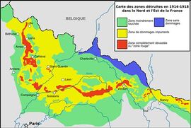 无人区残酷和恐怖的遗产至今仍然荼毒着欧洲的土地,很多人没有听说过的一个事实就是法国是全世界少有的几个仍然存在无人区的国家。位于法国中部凡尔登附近,大约460平方英里的“红区”是一战西线战斗期间最为激烈和血腥的地区,因为土壤中存在大量的未爆弹药和从毒气弹中泄露的化学成分,哪怕过去百年这块土地依旧致命且危险。图中所表示的红色区域,直到今天都因为危险未向公众开放,而且每年红区都能清理出上百吨的未爆炮弹。官方估计这片土地需要300-700年才能恢复,可见一战对人类社会,对自然环境恐怖的破坏力。