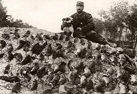 历史上,战争双方为了清除这些老鼠,使出了浑身解数,用猎犬,甚至是喷火器来扑杀老鼠。下面的图片就是德军训练的猎犬在战壕中的成果。