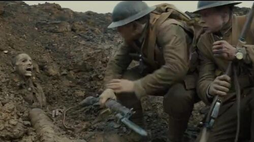正如片中所描述的一样,信使通常是两人以上的小组前去传递信息。曾在法国的加拿大部队服役的美国中士亚历山大·麦克林托克(Alexander McClintock)在1918年的一份报纸上描述过前线信使的编制:“通常来说,同时派遣两到三个信使或是按不同的路线分别派遣三个信使是前线传递信息的基本原则,这样至少能保证一个人肯定能将信息传达到目的地。”同时,他也讲述了不按规章办事的可怕后果:“曾经有一次,在一支部队即将对德国阵地发动攻击前,一名军官最后一刻改变了进攻计划,并只派遣了一名信使去传达信息,结果那名信使在穿越无人区时被德军打死了,他的消息便没有被传达。结果,一个营在没有火力掩护的情况下攻击了德国人,在几分钟内造成了高达600多人的伤亡。由于这个可怕的错误,几名军官被送上了军事法庭。”《1917》的故事很大程度上也是受这个故事启发的,这也是为什么片中史科菲尔德会拼上性命去传递信息,因为如果他手上那一张薄薄的纸没有及时送达前线,那么就是数以千计的生命将白白牺牲。