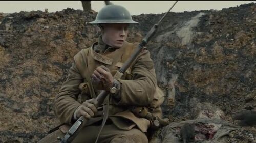[史考菲]由[乔治·麦凯]饰演,是一名英国士兵,在《1917》中他因受伤被德军俘虏并最终牺牲。