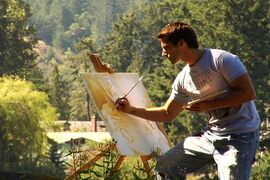 他看到Tyler在落日的走廊上洋洋洒洒的画着风景,