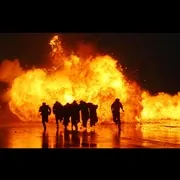 小偷被拍在运油车下,被车轮卡住,市长冲了出去~众人唯恐落后,也冲了出去,包括刚才还在说救一人还是保全全体的兄弟。于是现场开始搬车,于是油罐车在漏油,于是眼尖的镇长看到一根电线折了,于是这根电线竟然还有电......真不可想像,电场的人是怎么撤离的,竟然也不拉电!无敌了!于是在市长的智慧下,就是扎车胎。而且手法很利落,于是众人开始往后跑,于是油罐车终于碰到了那根电线,于是终于爆炸,于是......我以为是哪个美国大片的镜头出现了......后面在爆炸,前面几个黑影......