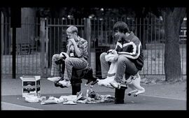 到了这一步,《苏默斯小镇》隐藏的另一信息也该透露了,这是伦敦一处交通枢纽。有传闻说电影是西恩·迈德斯替欧洲之星特快车所拍摄的命题短片,严格来说该说法是错误的。因为这笔生意最后没有谈拢,但导演却来了灵感,决定把原来只有十来分钟的短片扩充成剧情片的长度,欧洲之星的存在并没有左右到剧本编写。然而片中还是出现了车站与列车,尤其是在结尾,两个少年搭乘欧洲之星来到了巴黎。有人说是真实发生,有人认为是利用想象,显然这个梦幻般美好的彩色结尾做了开放式处理,而首尾出现的列车之旅却让影片完整一体,开头Tomo来到苏默斯,结尾他们离开苏默斯。