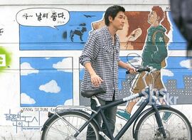 “假如爱有天意”奉献过一场完美的关于雨和雨伞的浪漫,“我的甜蜜都市”也用了这样的桥段,只是女主角想的是另外一些事情。奇怪恩秀和泰宇在一起的时候从来不会遇到英洙,一旦心情糟糕一定会遇到英洙,那个男人微笑着,默默照顾着难过的恩秀,放弃车子步行送她回家,再一个人离开,他以让人舒服的方式存在,虽然行动缓慢,但是坚实的深入人心。有时候我也会自私的想,被年轻男孩怜爱后,是不是可以和成熟男子步入婚礼?或者这部电视剧的主打并非甜蜜,人生也并非如此如意,只是愿意把泰宇当作欲望,英洙当作希望,我们都一如恩秀,依靠着欲望和希望,活了下来。