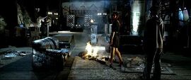 至于好像很厉害的Vampire Hunter,整部戏杀了一只鬼就庆功了。不过也对,没多少个可以被解决了。然后说一两句有点意味深长的话,Build a man a fire, and he’s warm for a day; Light a man on fire, and he’s warm for the rest of his life. 我一直想不通为什么他要这么说,对着Shane(Head Vampire)燃起的遗体,也对着Chris 和Nicole。可是,这句话是有Hidden message没有啊?