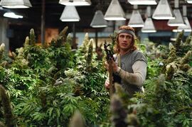Seth Rogen确实有才,这样的开场真乃才华横溢,有点国产相声甩包袱的感觉,画面成黑白,一袭旧式军装,还是荒野外底下实验室,有没有点阴谋论的架势?说是实验,最后抖出来是测试9号大麻是否使人失常,3分多钟的段落,基本上都是对白,但是效果出众,充满想象力,值得借鉴。