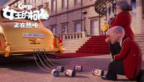 众所周知,伊丽莎白二世这位“全球著名爱犬人士”自从18岁收到第一只属于自己的柯基后便一发不可收,在70多年的时间里前后养了30多只柯基。电影也将女王对柯基的这份深情做到了极致的还原:比如,在影片中,女王为皇家首席柯基雷克斯制作了马克杯、贴纸等各种周边产品,并为柯基们提供特制的三餐、带柯基们接见外宾等,处处体现出“皇家首席柯基”的尊贵待遇。而事实上,白金汉宫商店也确实曾推出过一系列柯基的周边产品,并有专门的厨师为柯基料理食物,与女王一起会晤国际领导人也是皇家首席犬的职责之一。