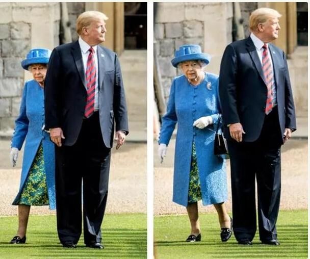 电影中,特朗普一下车就拉过女王一起自拍的“粗鲁”镜头令人印象深刻,实际上也影射了一波现实中女王与特朗普的关系。比如在访问英国的时候,特朗普曾经让93岁高龄的女王在高温中等待了将近15分钟,在与女王会面的时候也没有按照传统礼仪鞠躬,而是选择了直接握手。在检阅仪仗队环节的时候,更是直接“走位错乱”,挡在了女王面前,“走女王的路,让女王无路可走”这波操作引发了大批英国人民的不满。