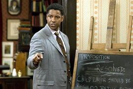 [马文·托尔森]由[丹泽尔·华盛顿]饰演。他是电影《激辩风云》中的核心角色,作为哈莱姆辩论俱乐部的天才辩手,凭借过人智慧与犀利口才在种族歧视盛行的1930年代崭露头角。面对白人对手的偏见与黑人社群的期待,他以缜密逻辑与人文关怀在辩论赛中屡创佳绩,最终带领团队突破桎梏,用语言的力量改写命运,成为美国历史上最具影响力的黑人辩手之一。