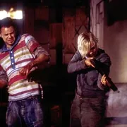 其实,影片中几乎所有的细节都是在紧张与轻松中完成的,这样交替的细节给影片带来了无数的欢笑,很典型的有几处,几个职员中最英俊的那个小伙曾说自己大概知道砍头后人们的意识还会存在几分钟,于是在他被人砍下脑袋以后,再回头看到自己的身体,那眼神中无疑是高兴的,证明自己的说法正确,这完全将死亡的可怕消解掉了。无需多语,一个镜头一个眼神便将紧张气氛缓和了下来。再有,主人公吸毒产生了幻想,看到了几个自己,这本来是挺可怕的一种心理暗示,但导演却在同一个语境下让那些同事们进行着自由交谈,于是,这种心理暗示既有它本身的幽默感,又令观众感到一种真实的就在身边的恐怖错觉。顺便说一句,导演在镜头运动以及场面调度方面极有新意。