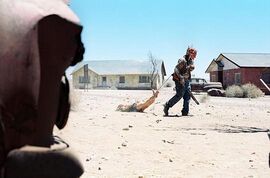 前因是嘎龌闷特要圈地建试验基地,原住民矿工不愿搬离自己的土地,非要誓死守卫家园,遂冒着被辐射的危险做了史上最牛钉子户,然后就是这么个结果。
