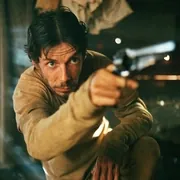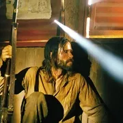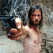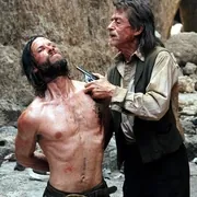 Meanwhile, Charlie rides a great distance in search of Arthur, drinking and apparently reflecting on what he will do. Along the way, he encounters an inebriated old man named Jellon Lamb (John Hurt). In the course of conversation, Charlie realizes that Lamb is a bounty hunter in pursuit of the Burns brothers and knocks him out. Later on, after sleeping on a rock bed, Charlie awakes and, before he can gather what's going on, is speared in the chest by a group of Aboriginal men standing over him. Seconds later a gunshot is heard and the head of the man who threw the spear explodes. Charlie then passes out.