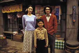 这样我完全能理解,观众为什么会这么喜欢这部片子。在2003年的放映时间来看,接近二战结束六十周年,对日本这样一个被攻击得一团糟之后立志重头再来,而且的确取得过骄人成绩的国家来说,民众们值得回忆的内容实在太多了。无论是作为标志性建筑物的东京塔,还是作为经典回忆的城市老街;从电冰箱、电视机的出现,到芥川奖与石原慎太郎和大江健三郎的文学名声,这么多经典的元素都汇聚在片子当中。